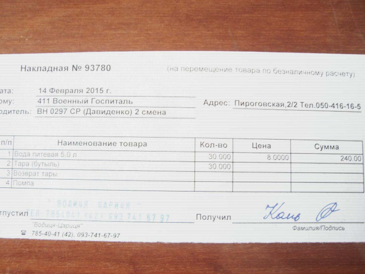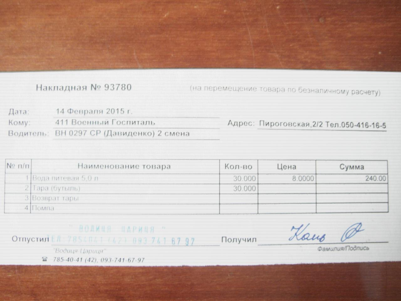 получила 30 бут.воды,заказанные накануне (оплатила 240грн)
