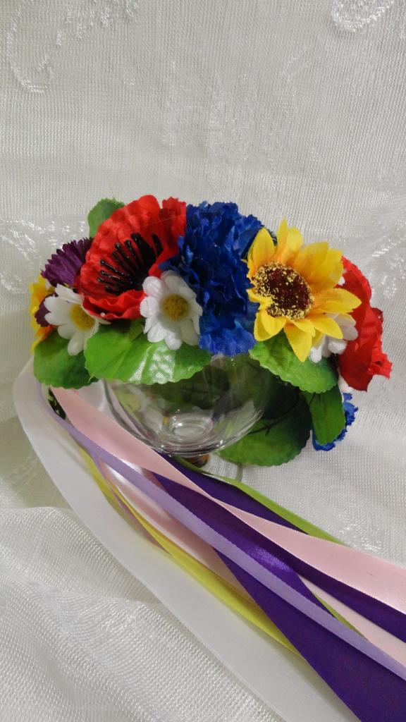 Все законченные работы к своим новым владельцам отправляется в флористической клеенке украшенной лентой.