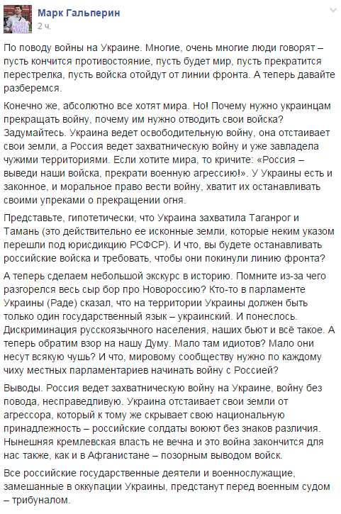 Ви тепер розумієте, чому знищено контрснайперські комплекси, аеророзвідку? Чому розформовано танкову бригаду в Овручі й відведено війська? Вам ясно, чому розміновано всі мости, дороги, лінію розмежування та Чонгар?