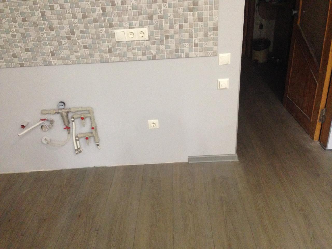Смонтированы теалые эл.полы, кухонная зона и коридор выложены плиткой, студийная зона - ламинатом.