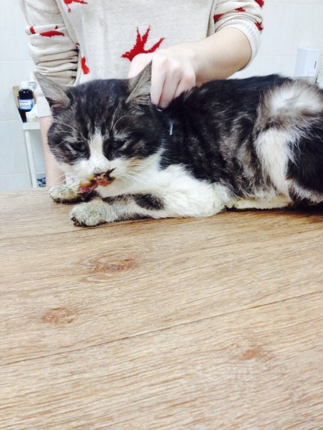 Уже лет пять-шесть у нас во дворах живёт котик, как и всех наших местных, мы его кормим и видим изо дня в день. Пару дней назад он пропал, а сегодня вернулся вся мордочка в гное и грязи, все лапы и хвостик в поносе, бока впали внутрь, и сам он еле ходит, шатается, заваливается..