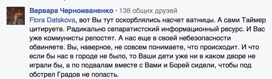 Ну Варвара права в оценке роли ПС в нашей жизни, они действительно много сделали. Но вызывает сомнение ее позиция о жизненной необходимости размещения их офиса в жилом доме. рядом с Фози куча офисов, охраняемых. И рядом домов жилых вообще нет. Это навскидку. А манера высказывать свои мысли у Варвары таки крайне оригинальная.