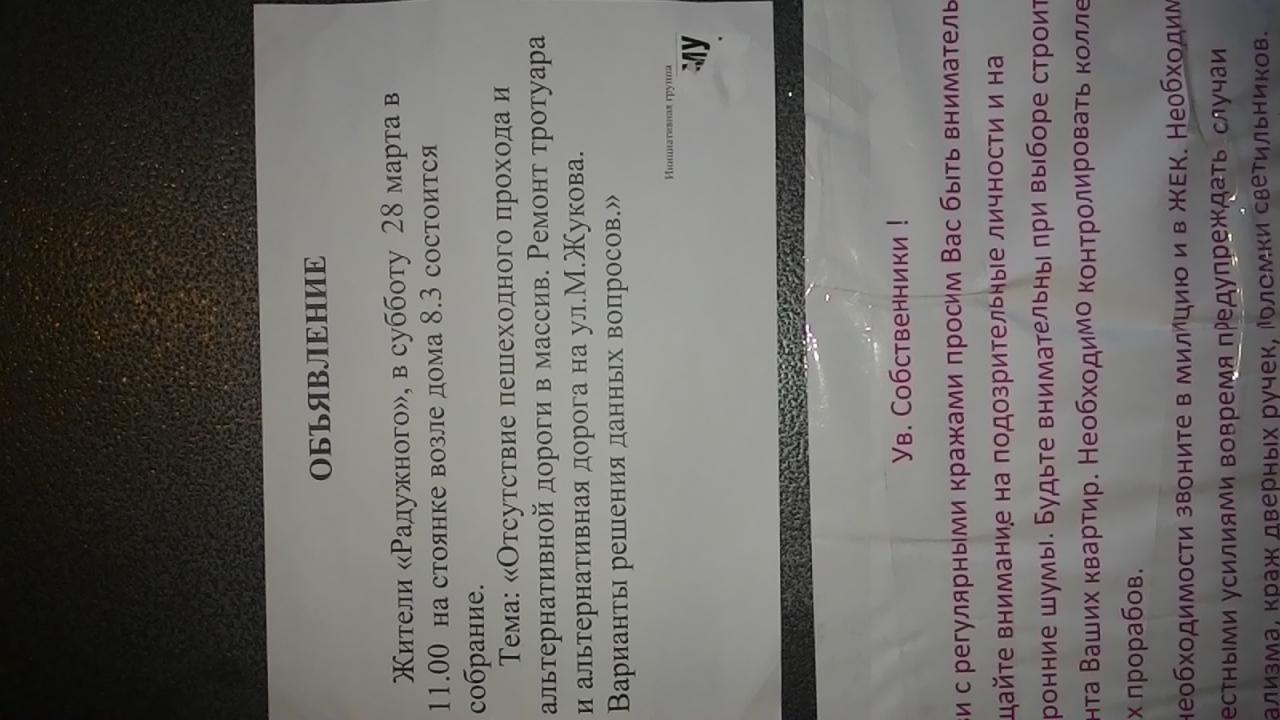 вот такая обьява на двери 16/2 по поводу собрания)