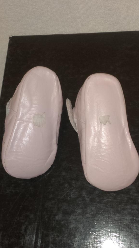 1. Пинетки на маленькие ножки. Полностью кожаные. Покупали в Антошке дорого. Очень нежные. Одевали пару раз. Состояние новых. Размер 20, по стельке 11 см. 50 гр.