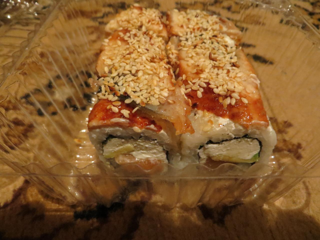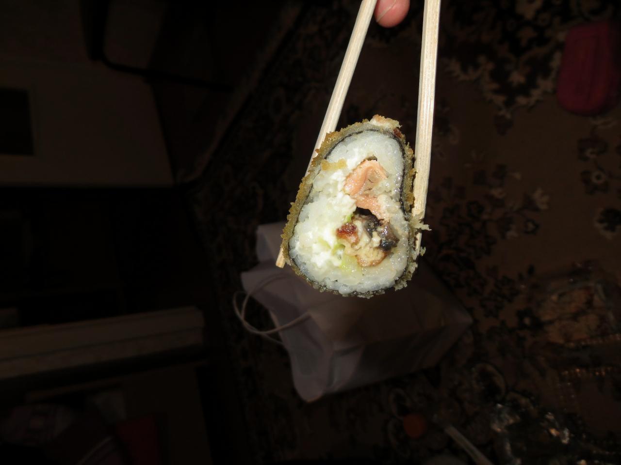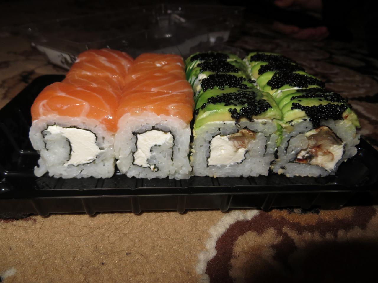 вчера взяли с смайлах самовыносом суши и пиццу. суши брали и раньше, все как обычно на уровне. правда в этот раз мне не понравилась начинка (взяли с манго на пробу), ребенок умял с удовольствием. пиццу брала впервые - очень понравилась итальянская на тонком корже. тесто легкое, как я люблю, а не как в пирогах тяжелое. правда забыли соус дать((