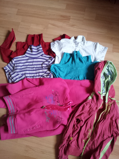 Есть вещи на девочку, состояние на "4", рост до 134 (8-9 лет) : гольфики под горло с длинным рукавом и коротким, спортивный костюм, спорт.кофта