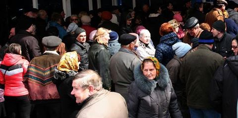 Донецк.Очередь за пенсиями.Что ж вы без плакатов "Россия пришла!Ура!"?