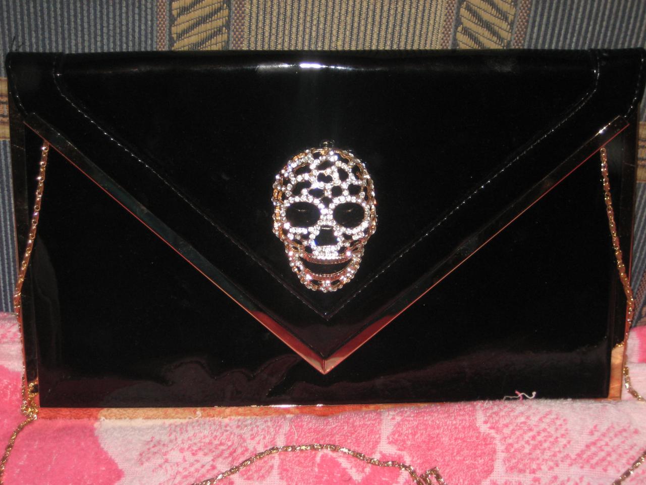 Клатч Манго, конверт, в комплекте две ручки, фурнитура под золото, лак черный, размер 30 на 17. Цена 450 грн.