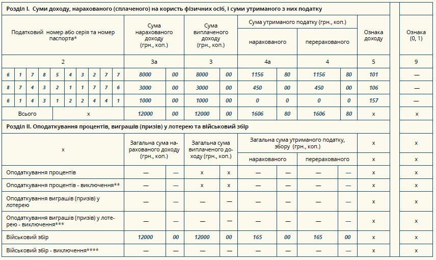 Такий розрахунок подається лише у разі нарахування сум зазначених доходів платнику податку податковим агентом протягом звітного періоду.