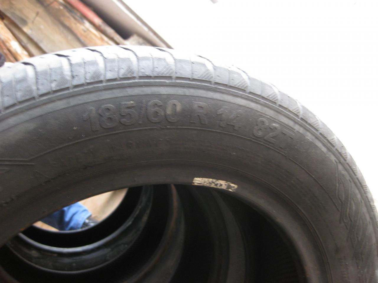 Продам комплект Continental ContiEcoContact 3 185/60/R14 82T, 26 неделя 10 года. Одна пара достаточно в неплохом состоянии. Цена 700 грн. Вторая пара несколько стерта с одной стороны (невовремя сделал развал). Цена 500 грн. Состояние видно на фото. Если комплектом, за все 1000 грн.