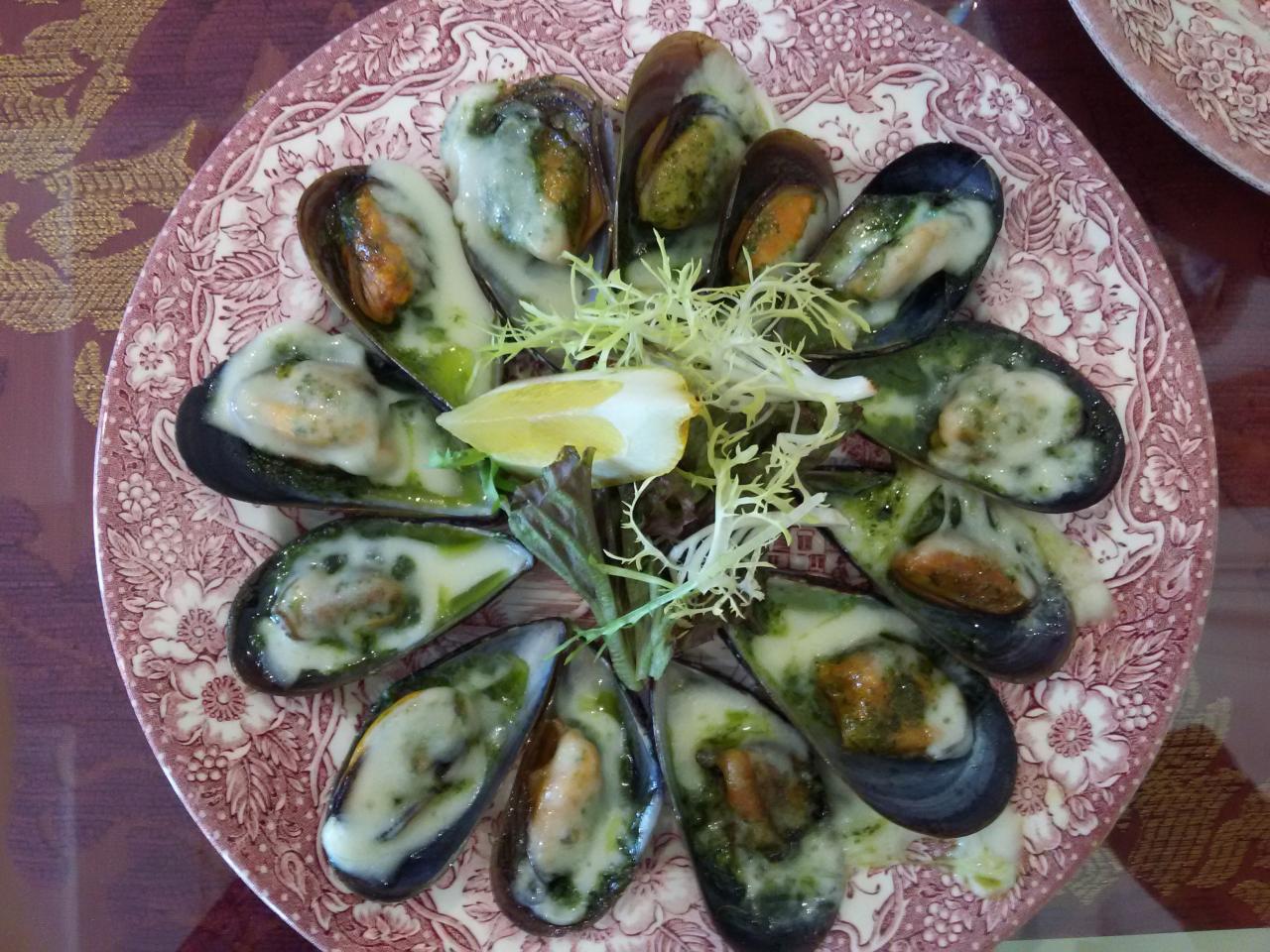 Ну и мидии, тарелочка за 100 грн... Но понравились с соусом песто, решила и дома заливать теперь)