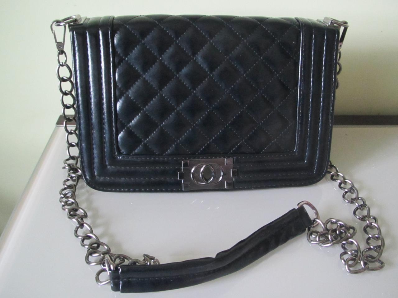 Продам новую модную сумку чёрного цвета на металлической цепочке стального цвета.