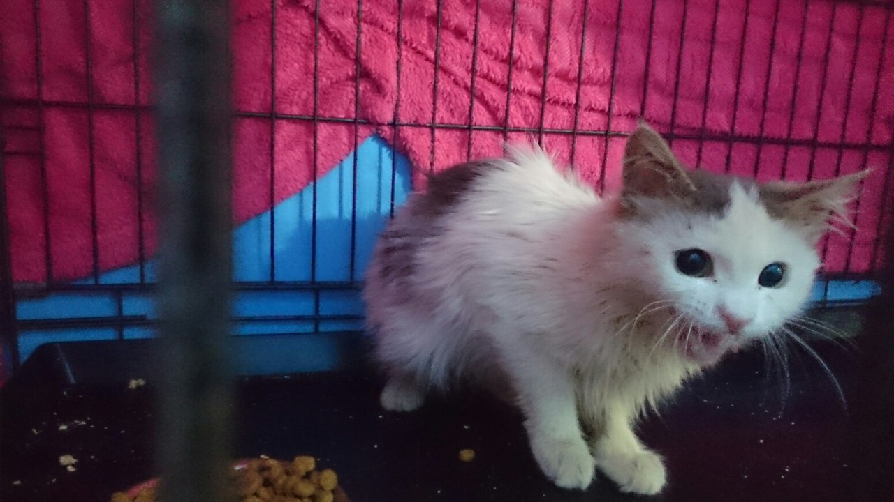Ларочка попала в клинику в тот же день, только состояние ее намного хуже, при вдохе и выдохе ее ребра ходят как юбка, она не может ни есть, ни пить нормально. Очень худенькая, одни кожа да кости. Она сидела под мусорным баком и тихонько умирала, пока ее не встретил добрый человек и не доставил на лечение в клинику. На данный момент врачи пытаются ее достать почти с того света. Молим Бога, что бы она пришла в себя и начала нормально дышать.