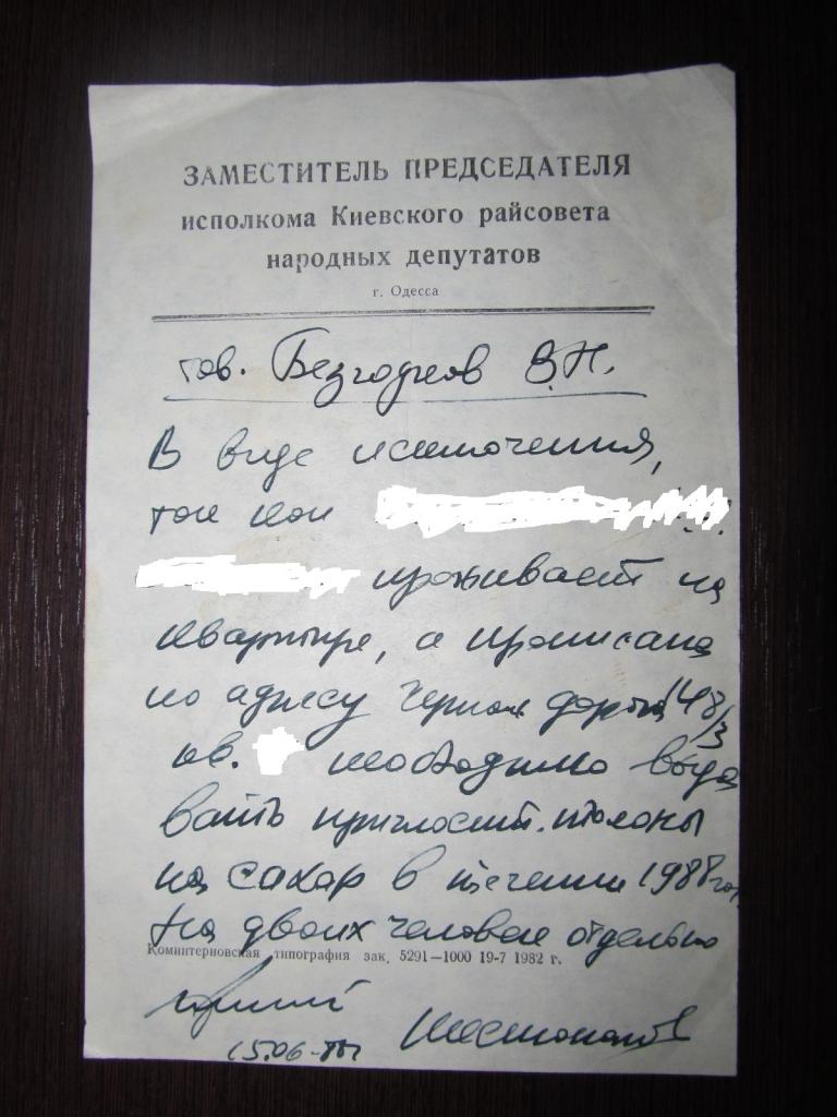 наслбирали помню 13 талонов на 13 кг сахара, потом пошли с утра на Депр дорогу/ марсельсеая в универсам (сейчас там Копейка), заняли очередь 467-ми. Поостояли в очереди до закрытия, записались в перенос очереди, утром в 6 утра пришли под магащин, нашли свою очередь. И опять стояли почти до вечера с мамой и бабушкой поочередно.
