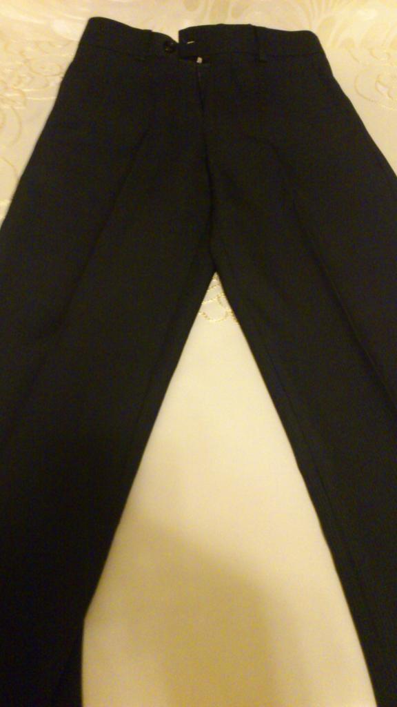 1. Костюм, состоящий из пиджака и брюк, песочного цвета. Указан наш размер на бирке - 32. Размер 128, возраст 7-9 лет. В отличном состоянии. Длина рукава пиджака от плеча - 47 см, длина брюк 77 см, объем 60 см. Для худенького мальчика. Состав ткани не указан, ткань на ощупь натуральная, костюм качественный.