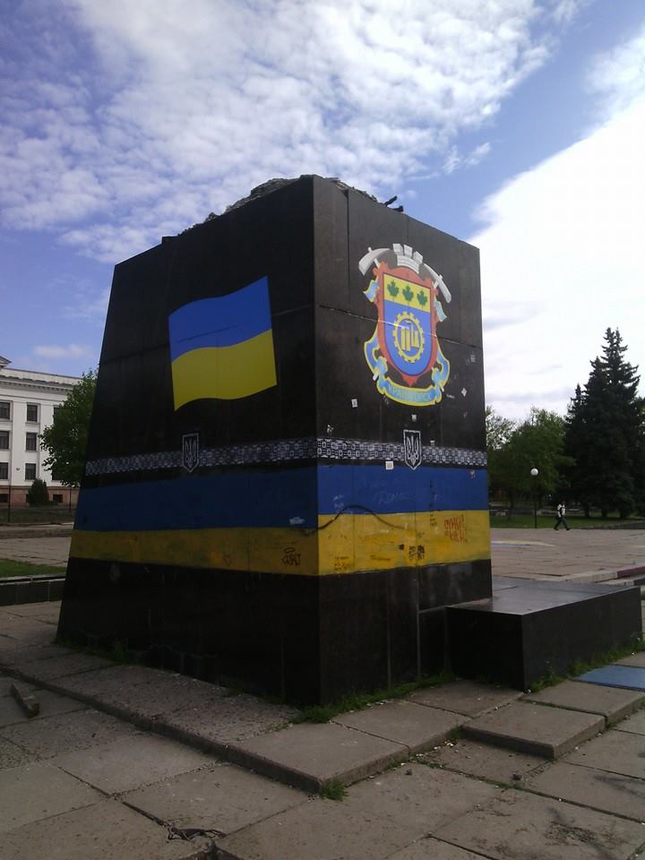 Поскольку власти Краматорска отказались демонтировать постамент Ленину, патриоты решили его немного украсить.
