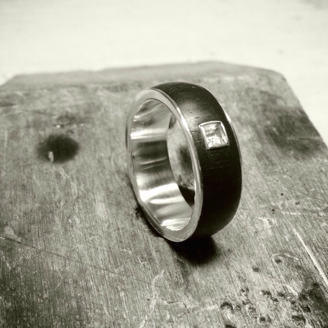 Еще одна вариация мужского кольца с цирконом. На этот раз с другим видом черного дерева - гренадилом. Нажмите на изображение для увеличения