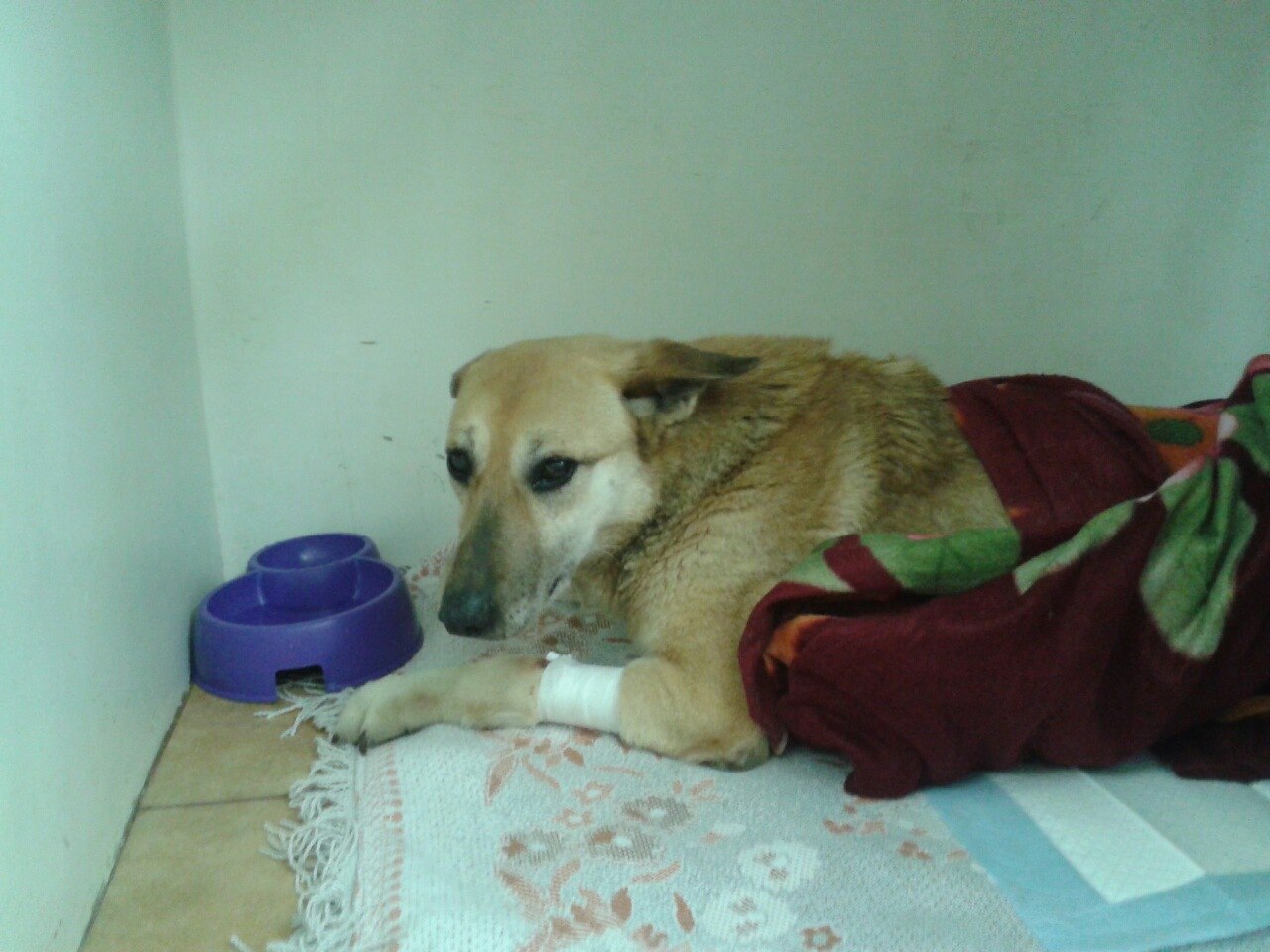 Спасибо Майе ,что решила все-таки попробовать оказать помощь этому несчастному существу, которое волочило каждый день задние ноги , пытаясь бегать по двору с остальными собаками на виду у всех жильцов, проходящих равнодушно мимо! Я уверенна, что у серьезного куратора -новичка обязательно все получится.