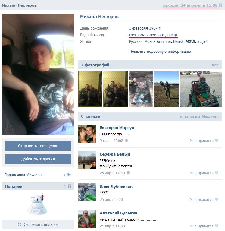 Михаил Нестеров (01/02/87, Кострома) убит 24/04/15