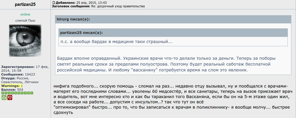 а ведь больше года прошло, а они так и не изменились... так же тупо хамят и не могут словами выразить ни одной мысли...