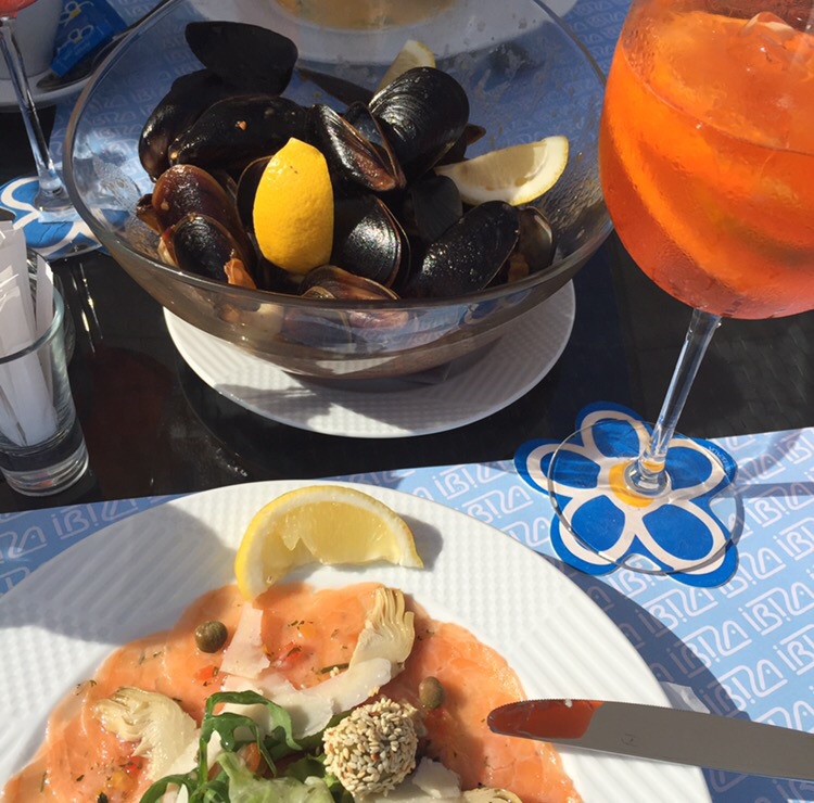 Ну и удивление года, это верхний ресторан Ибицы! Сразу скажу что ничего хорошего не ждала, и есть особо боялась там. В итоге все было безумно вкусно, особенно карпаччо из лосося, официанты очень приветливые и быстрые! Карпаччо 150грн, мидии 150грн, коктейль 145грн В итоге можно поставить 5+, и надеяться что с началом клубного сезона.