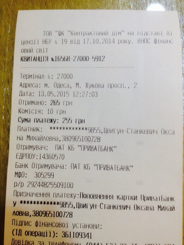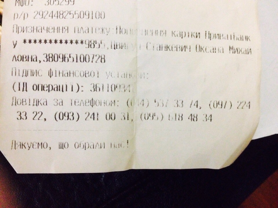 По поводу оплаты буду сегодня звонить разбираться с оператором тоже.... Меня уже достал этот Приват(не впервой и не только с Вами,-родные уже неделю не могут деньги получить). Оплатила 255грн еще в среду, да, забыла форму заполнить, т.к была не дома.