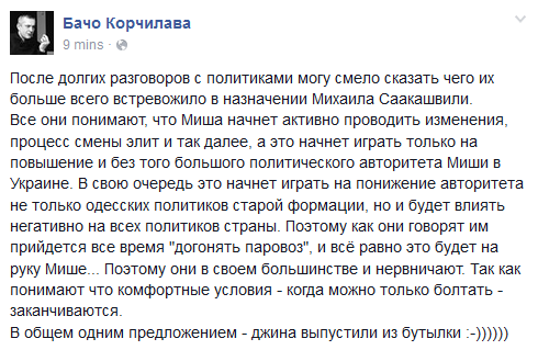 «Еще один меритократ назначен на руководящую должность в Украине! Михаил Саакашвили — губернатор Одесской области», — написал чиновник на своей странице в «Фейсбуке».