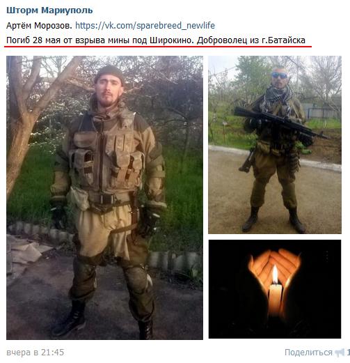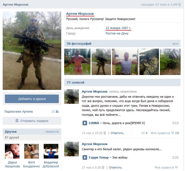 Рашист Артем Морозов (22/01/87, Батайск), убит 28/05/15 в Широкино