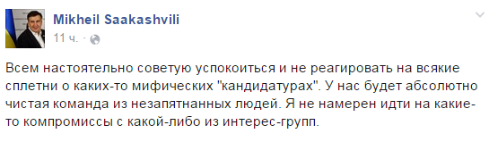 «Еще один меритократ назначен на руководящую должность в Украине! Михаил Саакашвили — губернатор Одесской области», — написал чиновник на своей странице в «Фейсбуке».