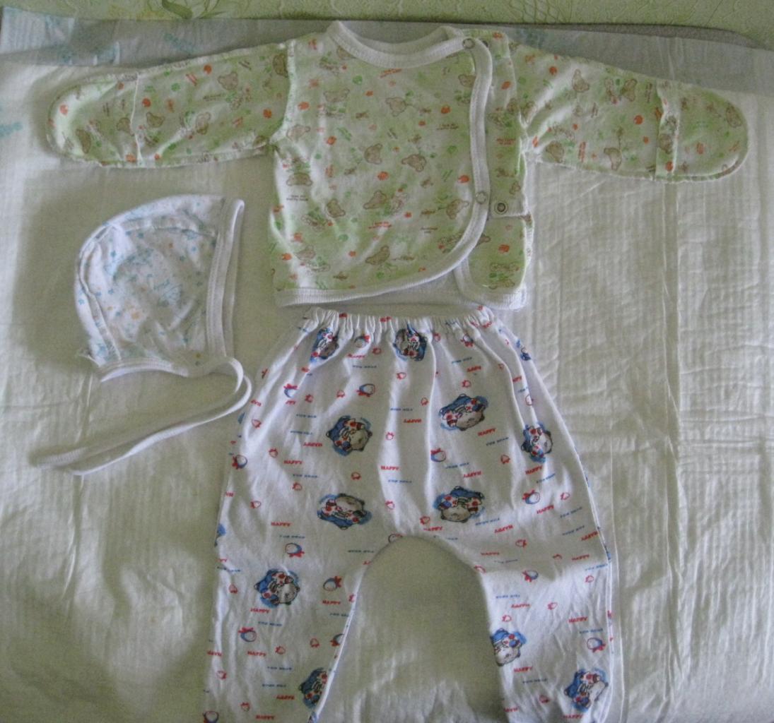 По настоянию медперсонала ребенка нужно было переодеть в распашонку с застежками или пуговицами, ползунки. По личному опыту: это идеальная одежда для первых дней. Пупок должен быть открытым, памперс подворачивается (если нет специального выреза), штанишки натягиваются на уровень памперса, и рубашечка не мешает. Один совет: рукавчики зашить, чтобы масюнька своим маникюром не расчесал личико. Ногти стричь в роддоме запрещают (дома, после купания можно). А когда приходят осматривать ребенка, то нужно тоже быстренько натянуть царапки. Мне хватило одного осмотра: пока отвернулась, мы уже через секунду были с «боевым раскрасом»)))