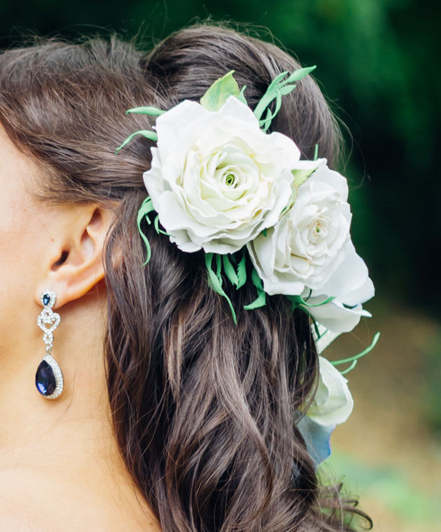 Роза в волосах будет превосходным выражением модного белоснежного тренда. Естественность природы только подчеркнет девичью красоту - что может быть лучше? Белая роза придаст завершенность и особую чувственность Вашему образу.