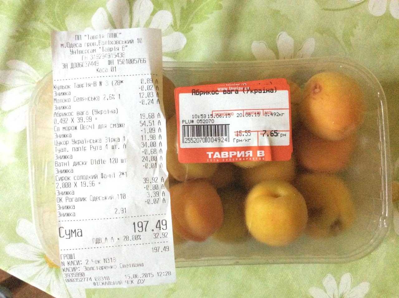 В очередной раз убеждаюсь насколько мудацкий магазин Таврия В. В этот раз обманывают на абрикосах. Смотреть цену. Ценник переклеян со специально заниженной ценой. Подскажите, куда написать жалобу, чтоб их поверили.