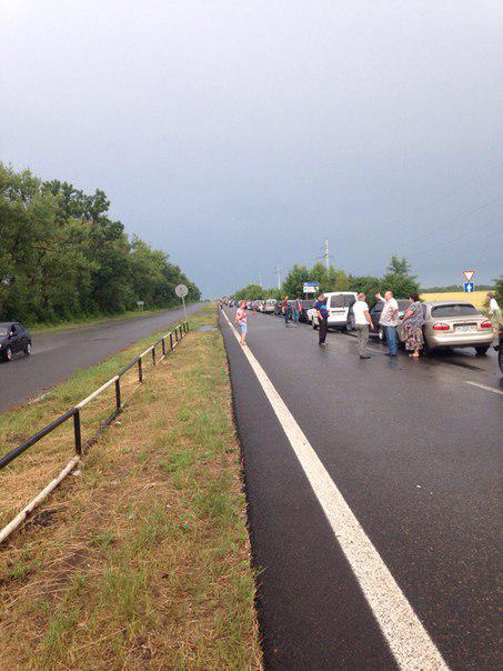 Очередь к блок–посту в Волновахе, можете увидеть кстати где Ваши дороги у кормильцев заблудились))))