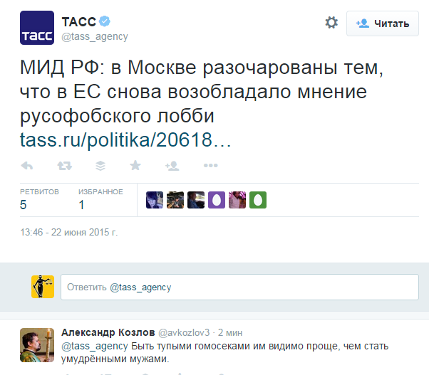 Русофобское лобби, Карл! Это в то время, когда глава ФСБ заявляет, что раша не может контролировать наемников в Украине и в ИГИЛЕ!!!