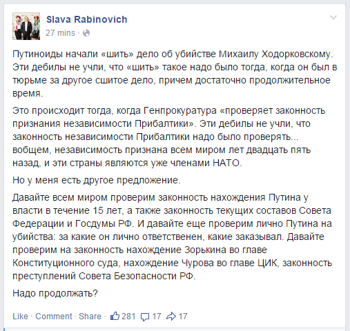 Вещества качественные привозят мабуть, вот и жив ещё. А вот до "русского мира" он имеет отношение такое примерно же как армяне Симоньян и Габреляновы. Платят, оно и сосёт.