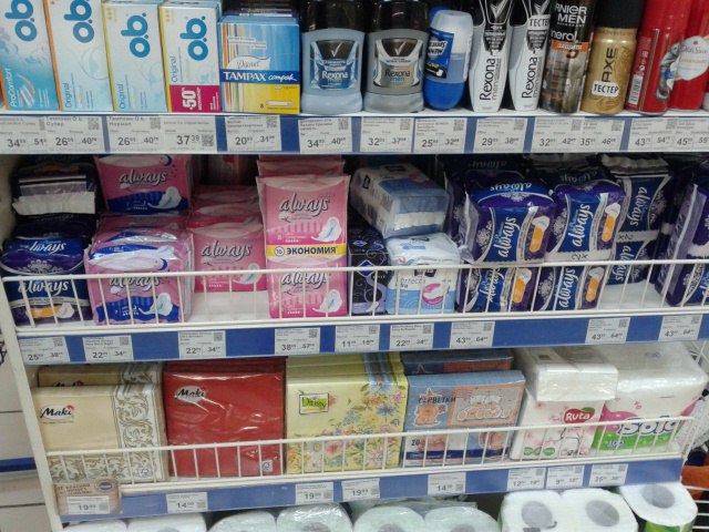 В общем , самые дешевые тампоны и прокладки нашла на том самом распродажном стеллаже в Сильпо , тампоны тампакс с аппликатором 8 штук 21 грн, и сегодня купила там же акционные ОВ 24 штуки за 32 грн , без аппликатора