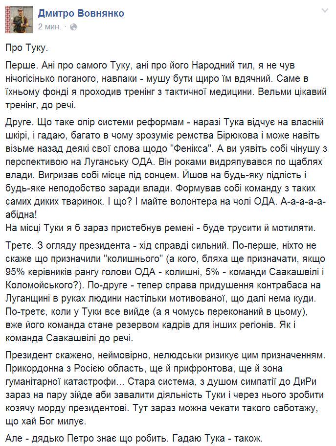 В августе 2014 года заявлял, что украинский конфликт — «сугубо региональная проблема», которая «является следствием распада СССР и всего того, что произошло перед этим, а именно: когда во время Второй мировой войны многие украинцы выступали за нацистов». А санкции против Москвы превращают «региональный конфликт в международный». Призывал Европу признать Крым российским, только предупредить Россию, что с остальными частями Украины «лучше так не поступать».