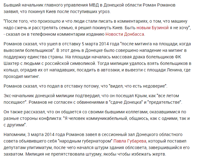 Быть новым Бузиной не хочу. Главный милиционер-сепаратист Донецкой области покинул Киев