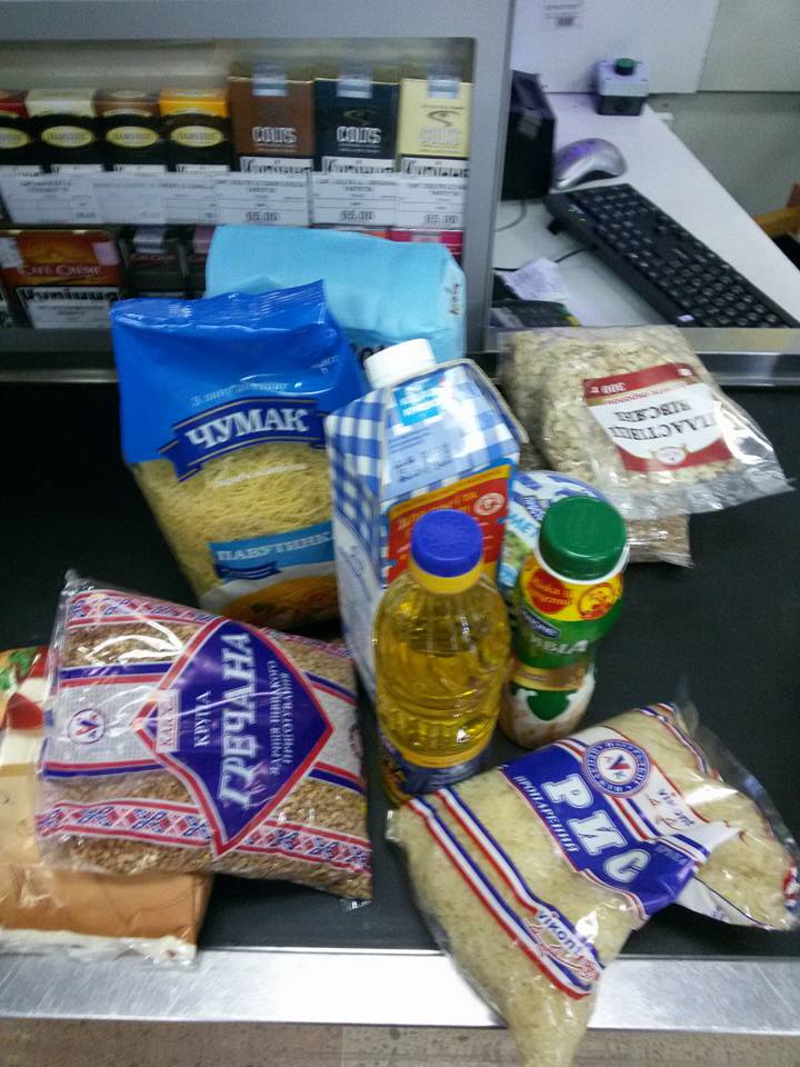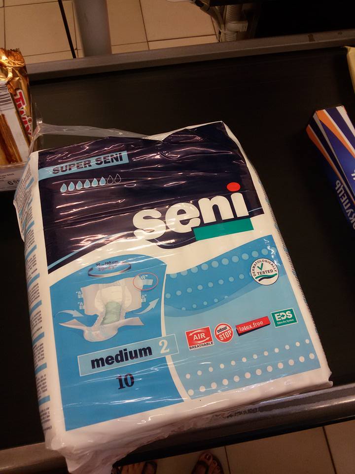 Памперсы и продукты.