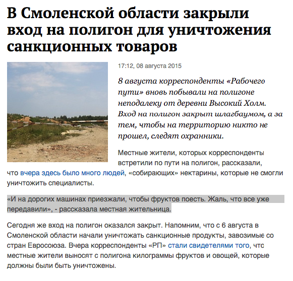 Во время уничтожения запрещенных к ввозу импортных продуктов на российской границе лопнуло уже сто таможенников.