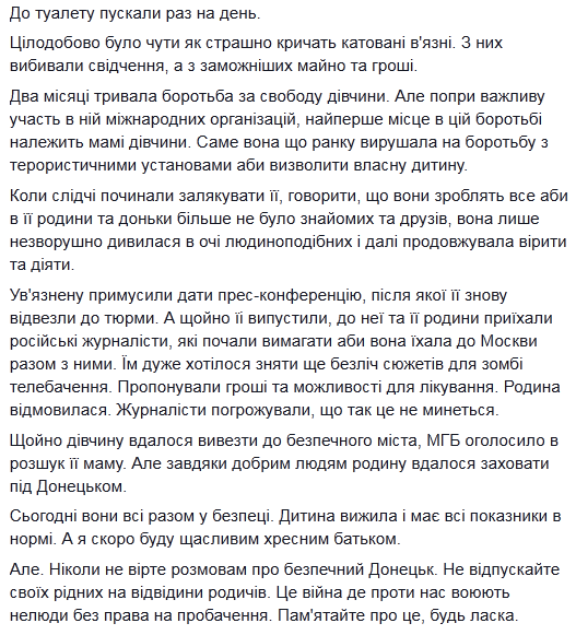 Алексей, в Украине развернута целая кампания по демонизации оставшихся в оккупации людей... Так легче объяснить себе и своей совести унижения на блок-постах (и отвлечь от процветающей там коррупции), типа_блокаду от которой страдают простые люди, а наживаются чиновники по обе стороны... Так легче не заметить, что президент Украины не считает себя президентом всей страны, иначе почему, например, нет его заявлений по поводу обстрелов и гибели мирных людей (Сартана - последний пример?). Почему нет обращения Президента к жителям оккупированных территорий, не предавшим Украину (а таких огромное множество)???? Украине в очередной раз не свезло с Президентом, но свезло с людьми - волонтерами, добровольцами, обычными гражданами...Вы из тех, кто, в отличие от президента Порошенко, любит Украину - всю, разную, настоящую. Вы показали всем украинский город Донецк, временно находящийся в оккупации и пытающийся выжить - спасибо Вам огромное от украинских дончан!