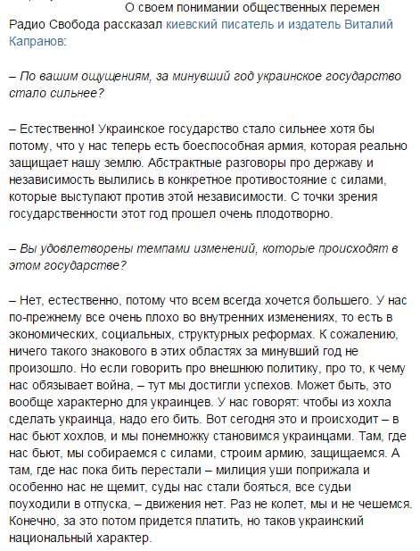 Но, вот нет, почему то, ощущения победы... Какая то недоделанность, недосказанность... мутноватость, какая то присутствует... и чем дальше от дней и ночей Майдана, тем мутнее и непонятнее...