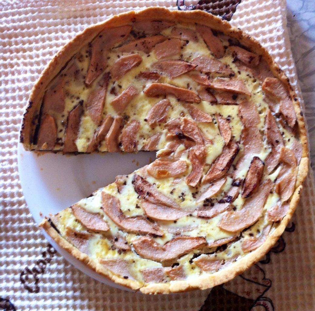 Попытка повторить тарт с персиком и фисташковым кремом с МК ,слишком тонко раскатала тесто( учту на будущее