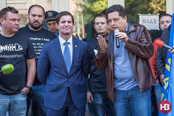 Автомайдановцы приехали протестовать против ареста одесского активиста Евгения Резвушкина.