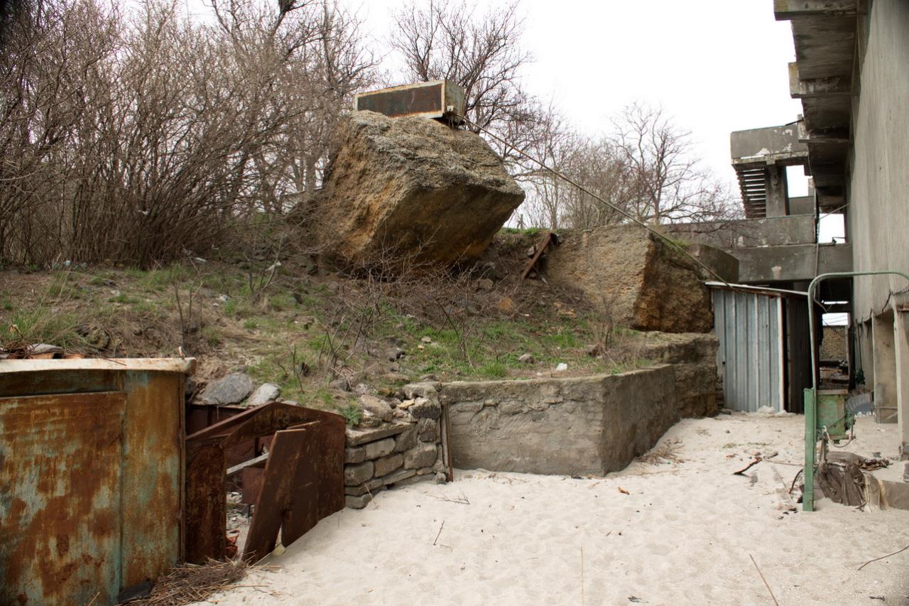 ID:	10350786 При строительстве серого здания скалу разрушили