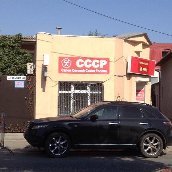 12. Звоните таксофонами в телеграфы. Качество мобильной связи в Крыму сейчас, как при Брежневе, а салоны мобильной связи рекламируют СССР (расшифровывается, как салон сотовой связи россии) https://twitter.com/KrimRt/status/648127348680880128 (фото из Алушты).