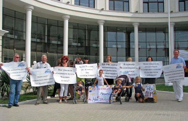 29 сентября возле здания Московской банковской школы прошел пикет: «Не делайте нас и наших детей бомжами. Мы не в состоянии оплачивать 2832 рубля в сутки за проживание в общежитии».