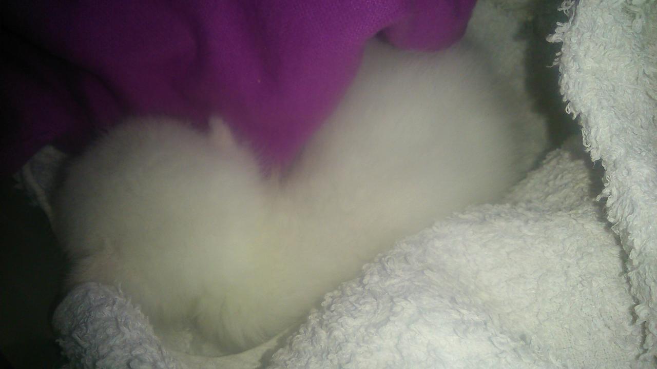 Малыш сразу выпил 20 кубиков молочка, хотел еще, но ему нельзя больше. Потом его посадили в переносочку возле инфракрасной лампы, он повис на решетке лапочками и пытался согреть свое лысенькое пузико)) так и висел, картина просто умилительная.