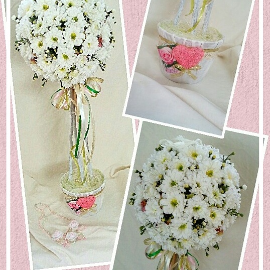 Привет всем!Я тоже люблю топиарии.Делаю из разных материалов,но больше люблю из живых цветов.