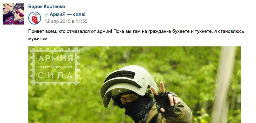 Пост самоубившегося в Сирии мудака. Он стал "мужиком" и больше не будет "бухать", а вот с "тухнуть" проблемка.